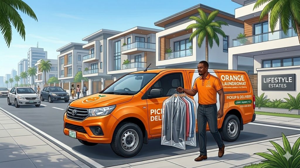 Orange Laundromat primarily serves Sangotedo, Ajah, and Lekki, making it particularly convenient for residents along the Lekki–Epe corridor.